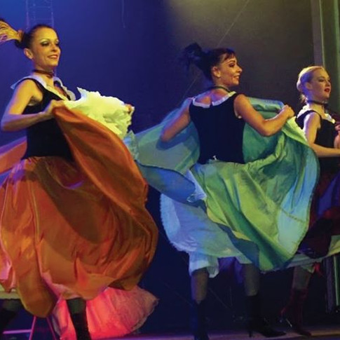 Nouveaux échassiers aux fabuleux costumes qui se mêleront à nos danseuses cancan pour une déambulation endiablée !