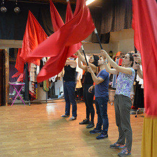 ET POUR PENETRER DANS LE SECRET DE LA FABRICATION et parce que le plus important n'est pas seulement le résultat mais le parcours , les ateliers, les rencontres; voici quelques images de la préparation et des répétitions. Ateliers de chant, de danse, de théâtre, recherches des visuels avec les drapeaux, essayages des costumes, lectures.